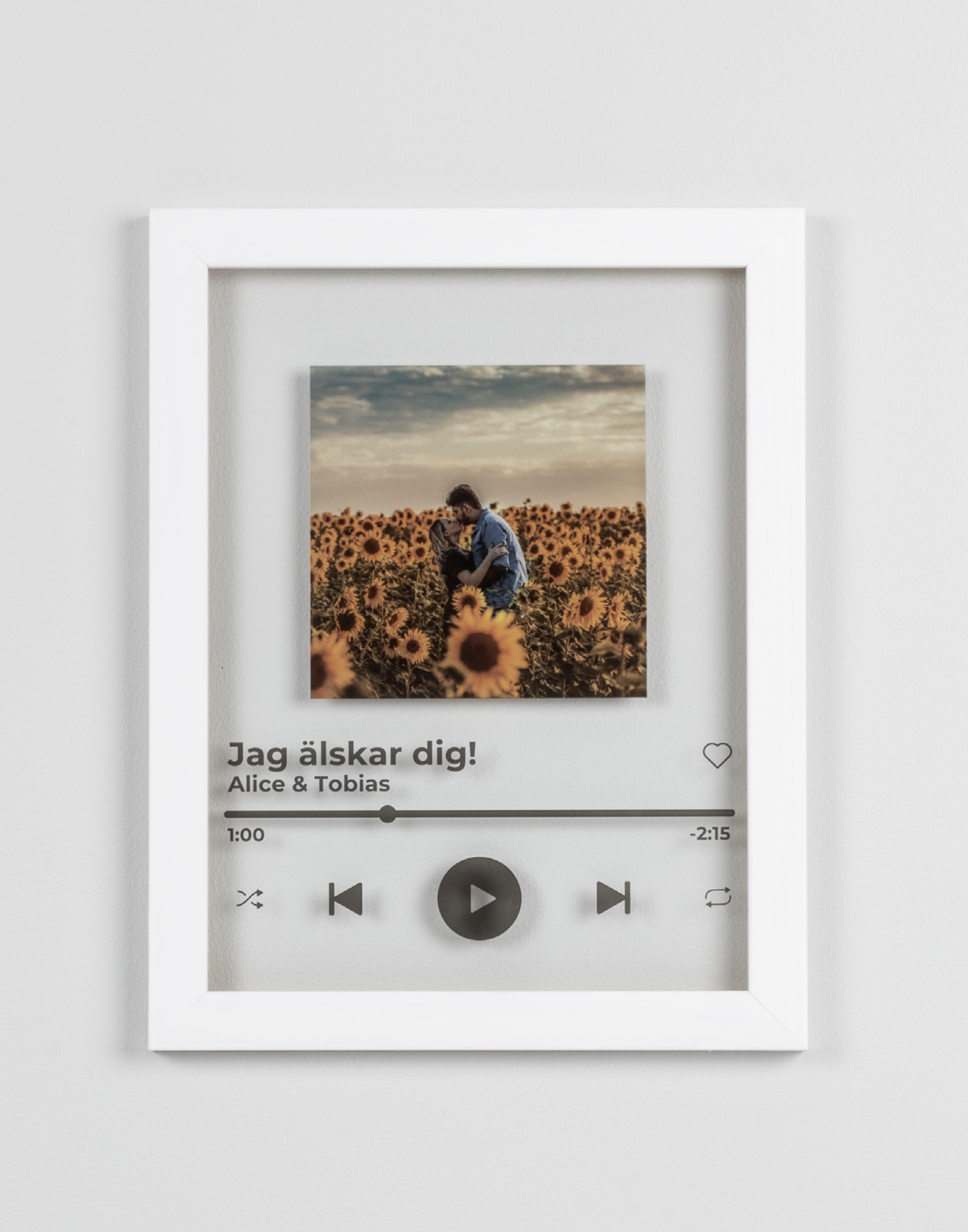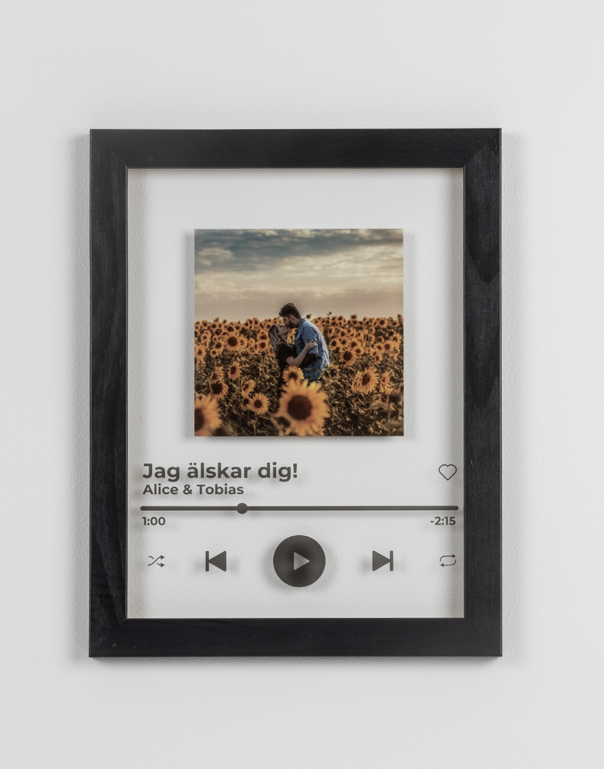 Tee aivan oma ja ainutlaatuinen musiikkitaulusi pienimmässä koossamme 18x24cm. Täydellinen niille, jotka eivät halua lisävarusteita tai ostavat telineellä musiikkitaulun sijoittamista varten. Voit valita minkä kuvan, tekstin ja nimen haluat lasialbumille/musiikkitaululle. Suosittelemme liittämään kuvat mahdollisimman laadukkaina, jotta asiakas olisi mahdollisimman tyytyväinen.