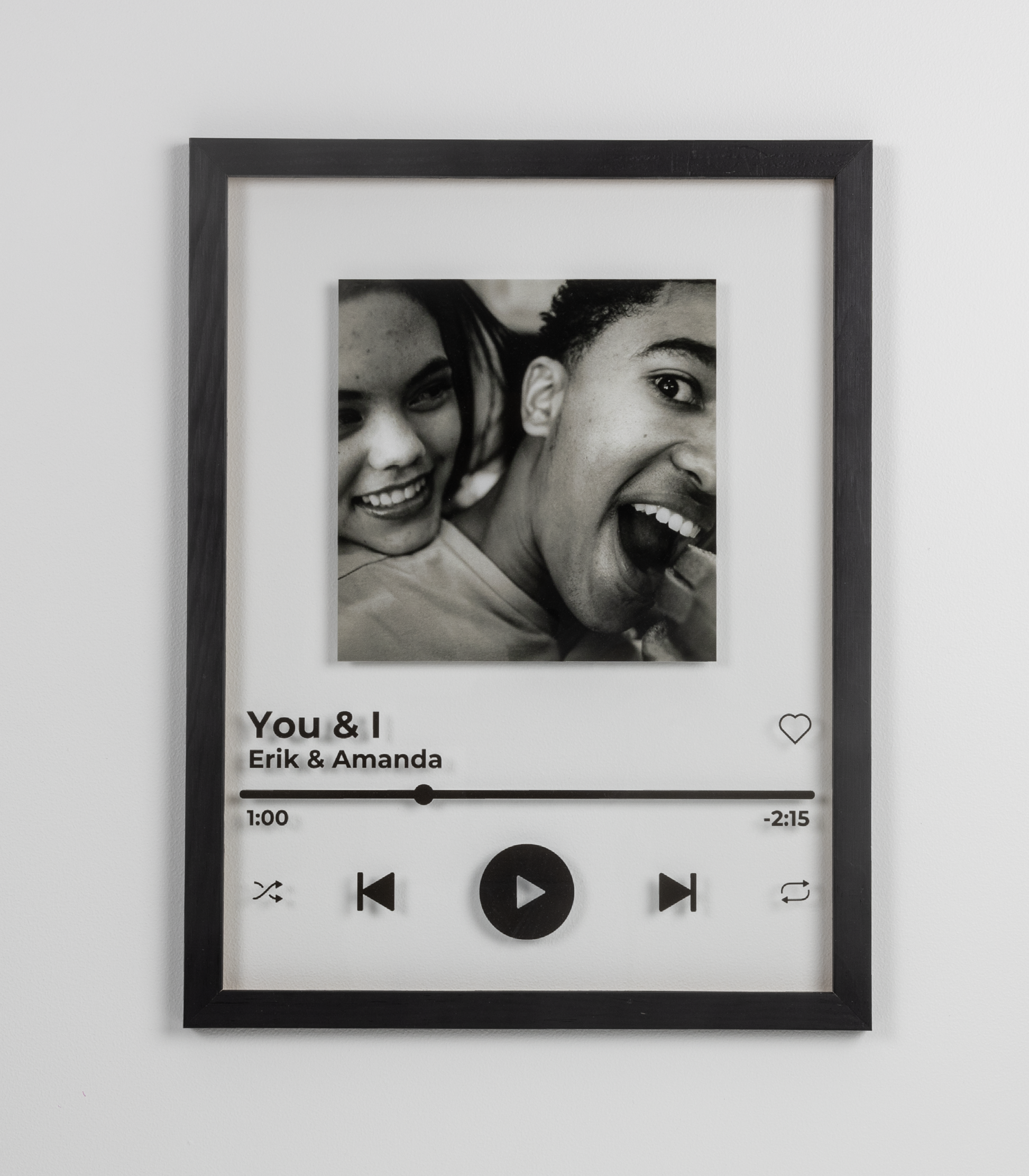 Tee täysin oma ja ainutlaatuinen musiikkitaulusi koossa 30x40 cm. Täydellinen niille, jotka haluavat täyttää pinnan seinällä tai sijoittaa hyllylle. Voit valita minkä kuvan, tekstin ja nimen haluat lasialbumille/musiikkitaululle. Suosittelemme kuvien liittämistä mahdollisimman korkealaatuisina, jotta asiakas olisi mahdollisimman tyytyväinen.