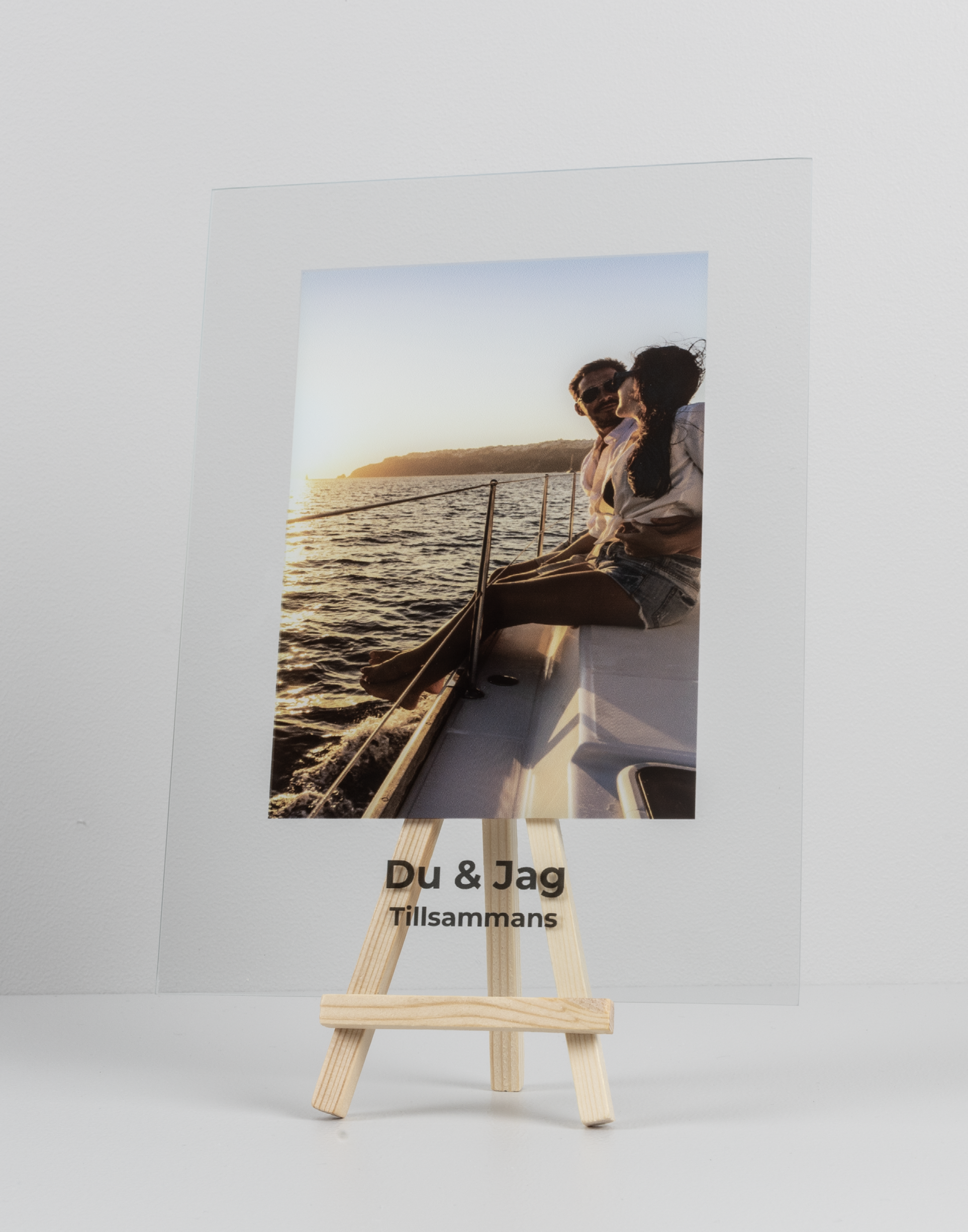 Du väljer själv vilken bild, text och namn du vill ha till din tavla i vår minsta storlek 18x24cm. Perfekt för dig som inte vill ha några tillbehör eller köpa med ett staffli att ställa glastavlan på. Vi rekommenderar att bifoga bilderna i högsta möjliga kvalité för att kunden ska bli så nöjd som möjligt.