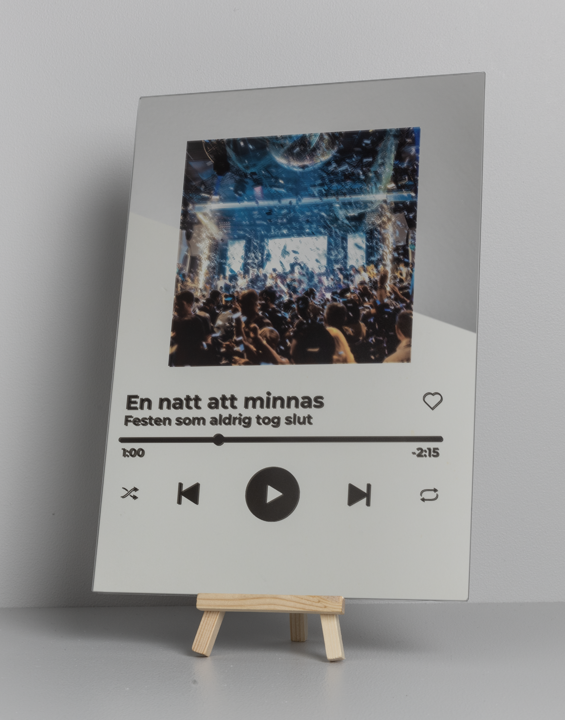 Med den reflekterande ytan och eftersom vit färg inte trycks får du en extra cool och designad musikspegel.