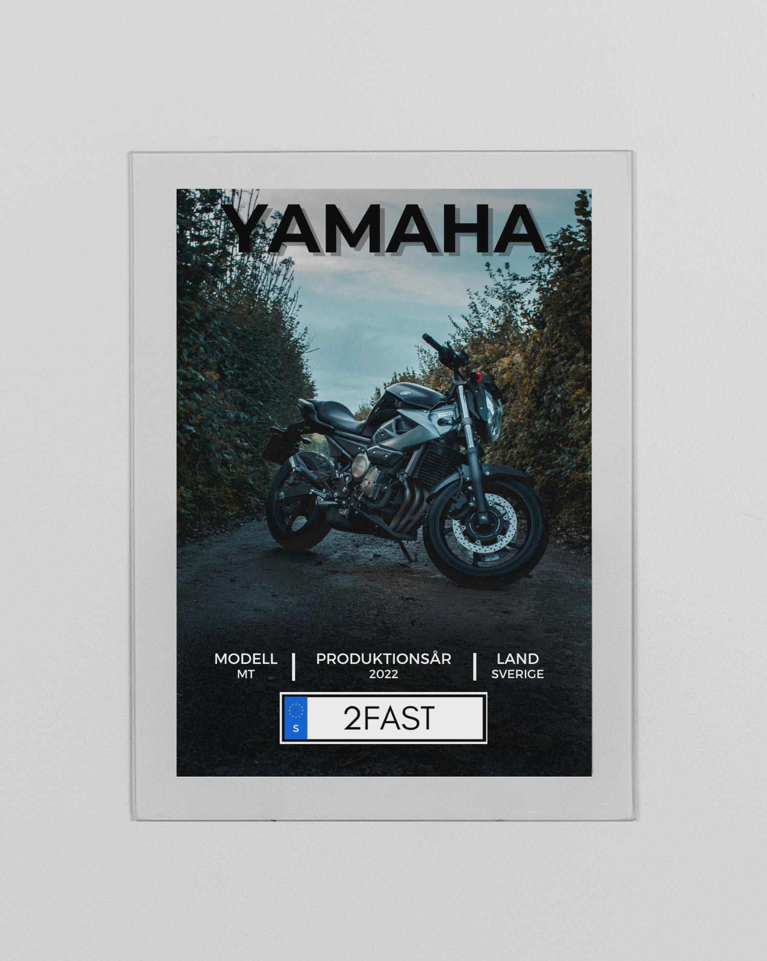 Gör din absolut egna och unika Motortavla i vår minsta storlek 18x24cm. Perfekt för dig som vill ställa Motortavlan på ett staffli eller bara rakt på hyllan. Du väljer själv vilken logo, bild, Modell, Produktionsår, Land, Registreringsnummer, och Märke du vill ha på ditt motorglas. Vi rekommenderar att bifoga bilderna i högsta möjliga kvalité för att kunden ska bli så nöjd som möjligt.